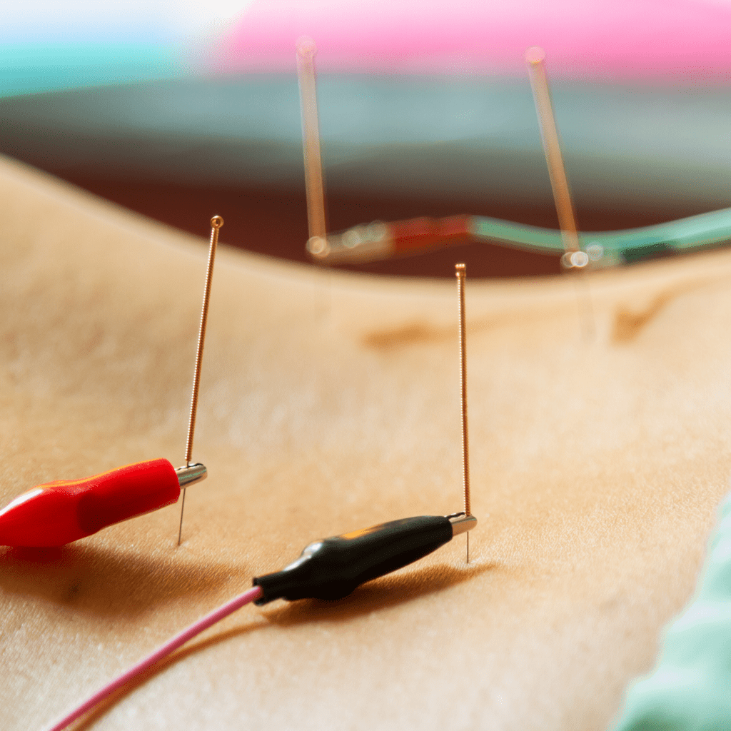Electroacupuncture involves applying a small current through the acupuncture needles into the surrounding muscles, soft tissue, and nerves. Similar to TENS machines, but applied much deeper into the tissues, this provides pain relief, inflammation reduction, increased strength, increased range of motion, and decreased tension.